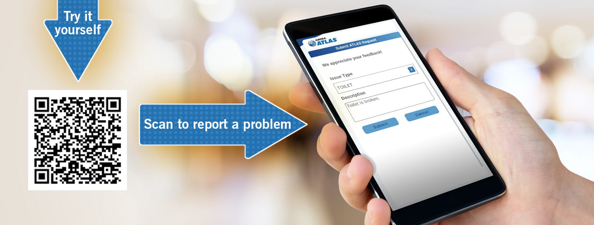 You have the power to dramatically decrease labor costs while improving customer experience with Arora ATLAS® Request, our easy-to-use, wizard style work request tool. Empower your staff and customers to request work in three clicks and give your technicians the complete information they need to find, fix, and record issues faster.